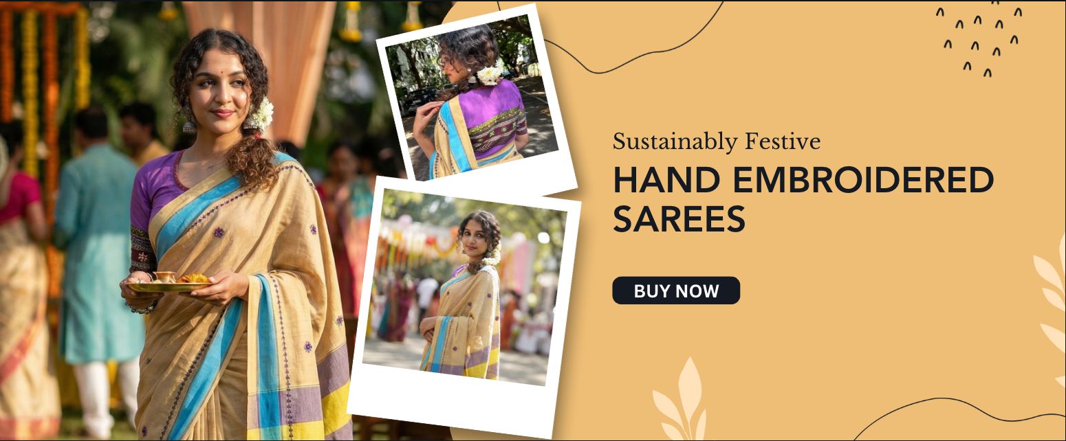 Fine Needle Hand Embroidery on Revival Handloom Sarees by Nomadic Tribes of India, This Collection is a must-have for Saree Connoisseurs!