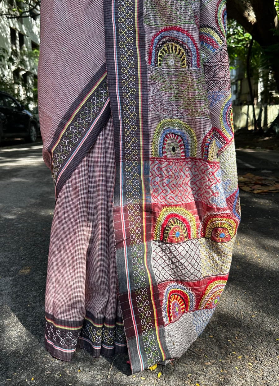Fine Needle Hand Embroidery on Revival Handloom Sarees by Nomadic Tribes of India, This Collection is a must-have for Saree Connoisseurs!